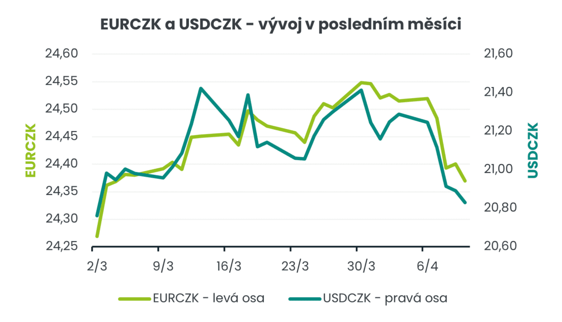 Stručný pohled na finanční trhy. Oznámení o dočasném příměří mělo v noci z úterý na středu výrazný dopad na finanční trhy. Ropa Brent obratem poklesla až na 92 USD za barel a zemní plyn pro evropský trh na uzlu TTF až na 43 EUR za MWh. Výrazně posílily akciové i dluhopisové trhy. A silný dopad byl samozřejmě patrný i na devizovém trhu, kde oslabil americký dolar. Koruna vůči euru posílila až lehce pod hladinu 24,40 EURCZK a vůči americkému dolaru k úrovni 20,80 USDCZK. Těsně před vypuknutím konfliktu na Blízkém východě se koruna vůči euru nacházela zhruba na úrovni 24,25 EURCZK a vůči dolaru na 20,50 USDCZK. Úplně si nemyslím, že se na tyto hodnoty může nyní koruna udržitelně dostat bez toho, aniž by došlo k jednoznačnému a nezpochybnitelnému potvrzení příměří na Blízkém východě. Naopak podle mě hrozí scénář, že pokud se vyjednávání o příměří bude komplikovat, tak se koruna rychle vrátí zpět na březnové hodnoty, tj. na cca 24,50 EURCZK a do pásma 21,20 – 21,40 USDCZK. A oslabení koruny může být i výraznější, pokud finanční trhy ztratí víru v brzké řešení konfliktu.